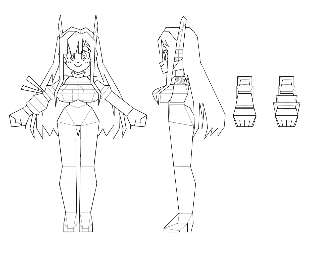 From there, we moved into concept and character development. Since the VTuber did not have a fully established character sheet, designs were developed and refined collaboratively. Adjustments were made to ensure the character would translate well into 3D while maintaining personality and visual appeal. Supporting elements, including alien characters and visual gags, were also introduced to strengthen the overall concept.